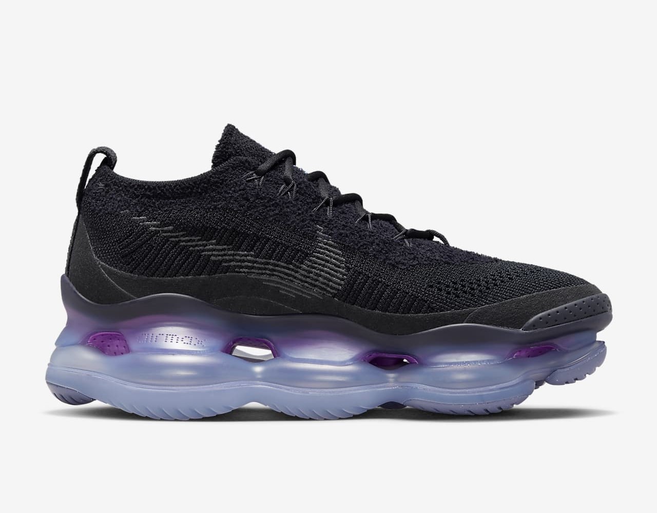 未来を見据えたデザインで、快適な履き心地を実現。 エア マックス スコーピオン フライニットは、「ポイントロード」のAirユニット (足取りに合わせて衝撃を吸収するクッショニング) を搭載し、未来的な感覚を追求しています。 見た目も重視し、驚くほど柔らかいシェニール織りのような素材をアッパーに使用しました。表示カラー: ブラック/ペルシアンバイオレット/ビビッドパープル/アンスラサイトスタイル: DR0888-001原産地: ベトナム