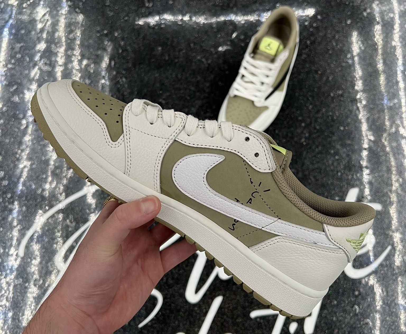 今回、海外メディアにて新たなトラヴィス・スコットとのコラボモデルの画像が公開された。本作は、ゴルフ仕様のエアジョーダン1 ローをベースに、過去に発売された名作"Reverse Mocha(リバースモカ)"を彷彿とさせるカラーリングで登場。アッパーをライトブラウンのヌバックとホワイトのレザーオーバーレイで構築し、お馴染みとなった"リバーススウッシュ"には、アクセントとしてブラックを使用。シュータンにはジャンプマンロゴと"GOLF"の文字、サイドに"Cactus Jack"のロゴパッチが施されている。リリースされる際は、これまで同様に争奪戦になることは避けられないだろう。