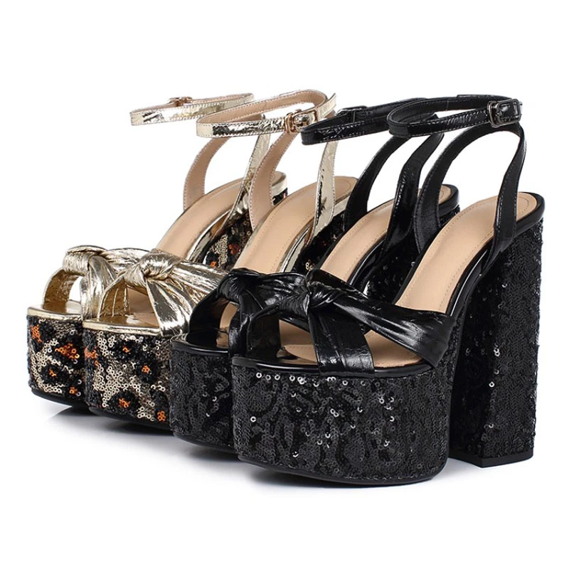 ファッション女性の靴夏新セクシーな バックルエレガントなブラウン防水パーティーシューズチャンキーヒールsandales 33-40