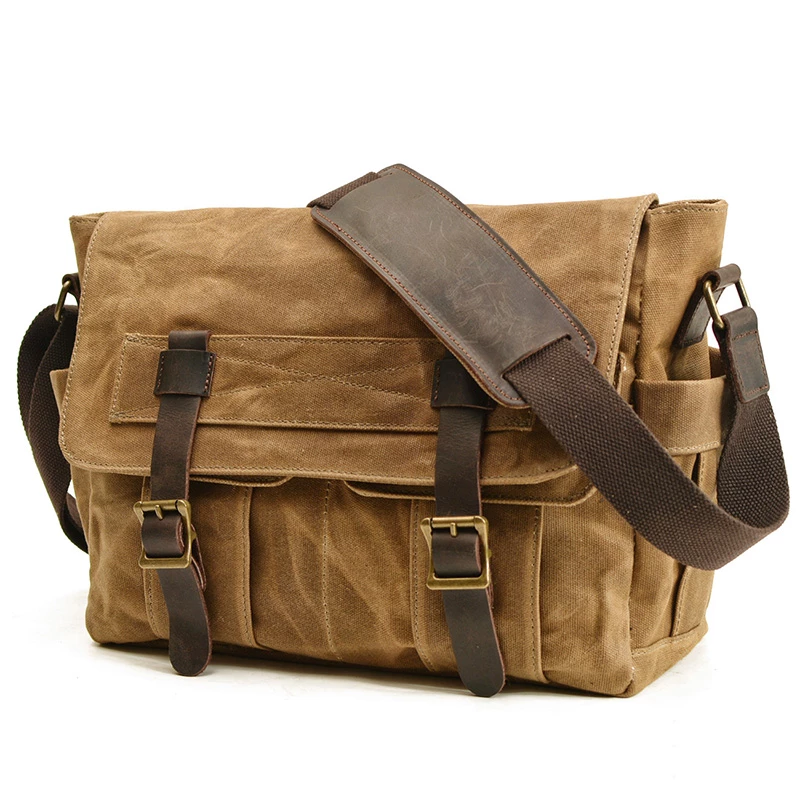 メンズレトロオイルワックス,レザーキャンバスハンドバッグ,屋外ショルダーバッグ,ヴィンテージクロスメッセンジャーバッグ