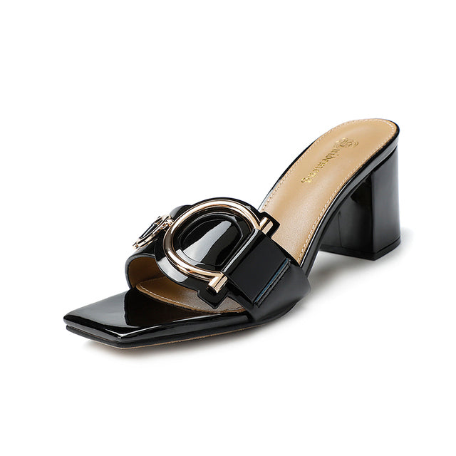女性のための光沢のある革の夏の靴,女性の厚手のハイヒールの靴,パーティーシューズ